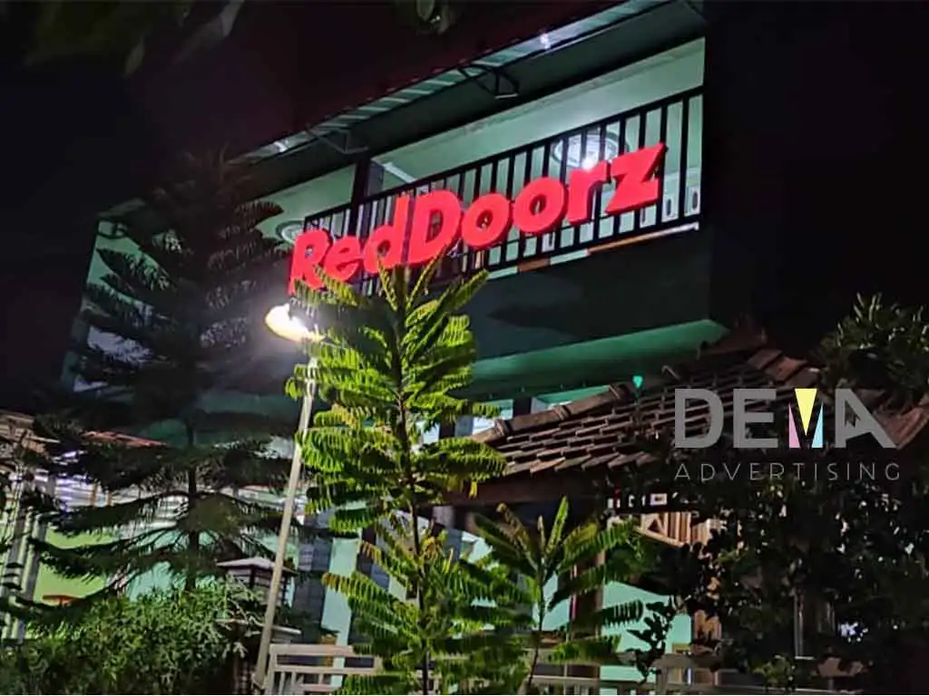 Neonbox RedDoorz dirancang semenarik mungkin untuk menghadirkan kesan memukau pada setiap pancarannya. Menggunakan material berkualitas tinggi, neonbox produksi **Dema Advertising** tidak hanya menarik secara visual, tetapi juga tahan lama. **Dema Advertising** adalah solusi tepat untuk memenuhi kebutuhan media promosi Anda.
